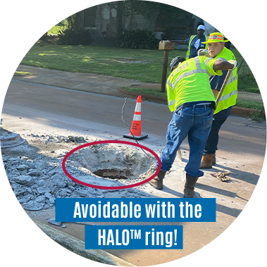 Halo is the first-ever, patent-pending, traffic-rated composite top riser ring system for CAP Composite Manhole Covers. Raise manhole covers’ rim elevation before repaving in MINUTES.